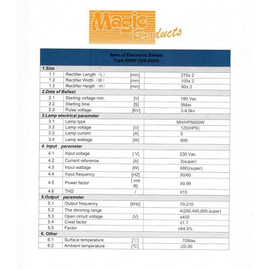 BALASTRO MAGIC DIGITAL 600W